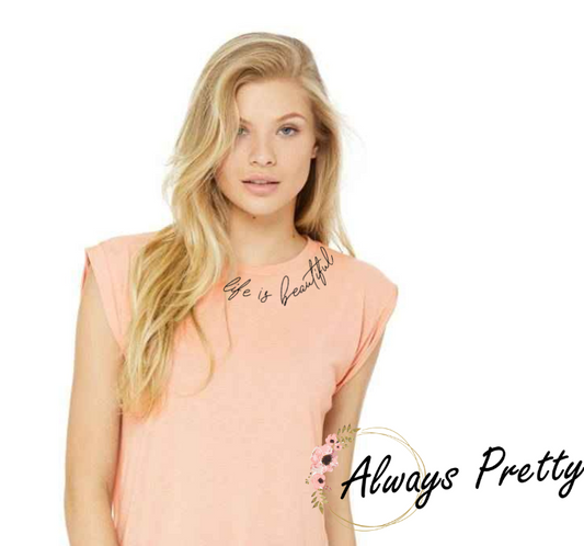 Life Is Beautiful Flowy Rolled Cuff Tee