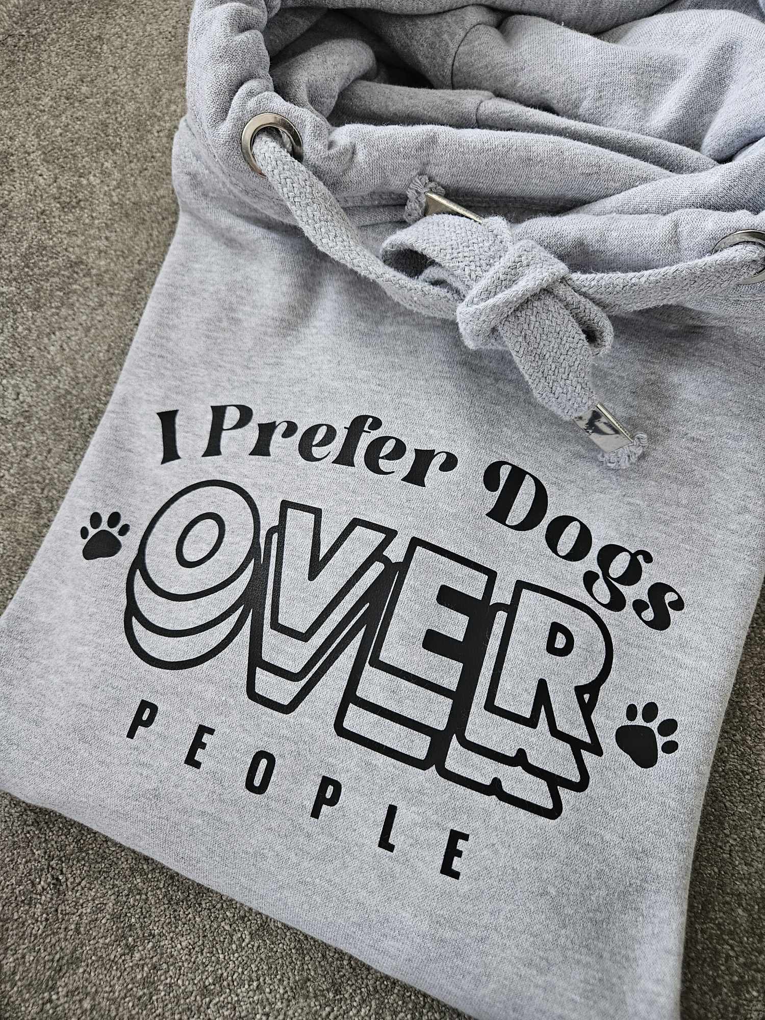This luxury cowl neck hoodie, available in various colours, features an "I Prefer Dogs Over People" design. Show your love for your furry friends while staying warm and stylish. Made with high-quality materials, this hoodie is perfect for any dog owner or dog lover.